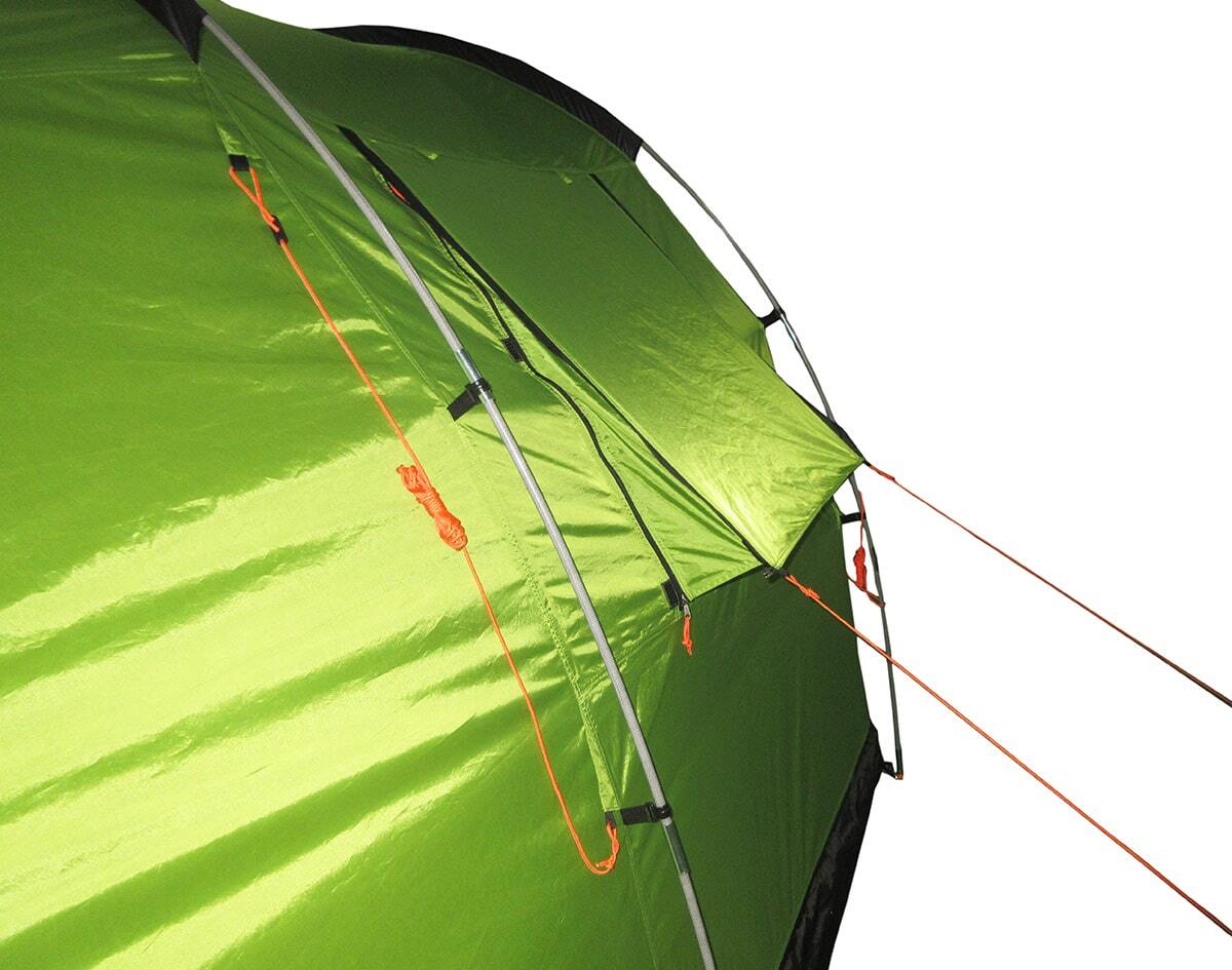 Все входы и окна палатки оснащены прочной антимоскитной сеткой. Насекомые не доставят вам дискомфорта во время стоянки в лесу или на берегу водоёма. Ветрооттяжки выполнены в ярком цвете, поэтому вы не споткнётесь о них в тёмное время суток.