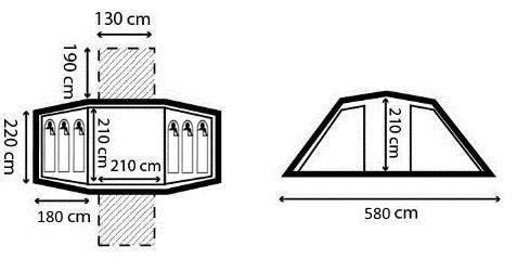 Размеры внешней палатки (ДхШхВ): 580x220x210 смВес: 15 кг