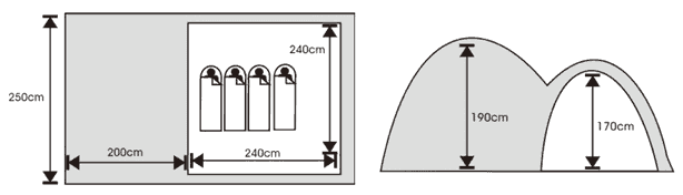 Размеры внешней палатки (ДхШхВ): 440x250x190 смВес: 14 кг