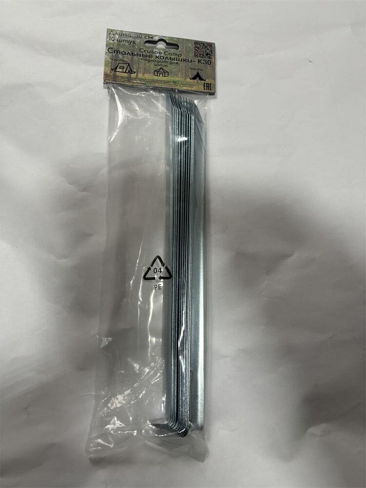 В наборе 10 штук. Длина 30 см, Ширина 2 см. Усиленные колышки выполнены из нержавеющей стали толщиной 1 мм, что обеспечивает долгий срок эксплуатации.