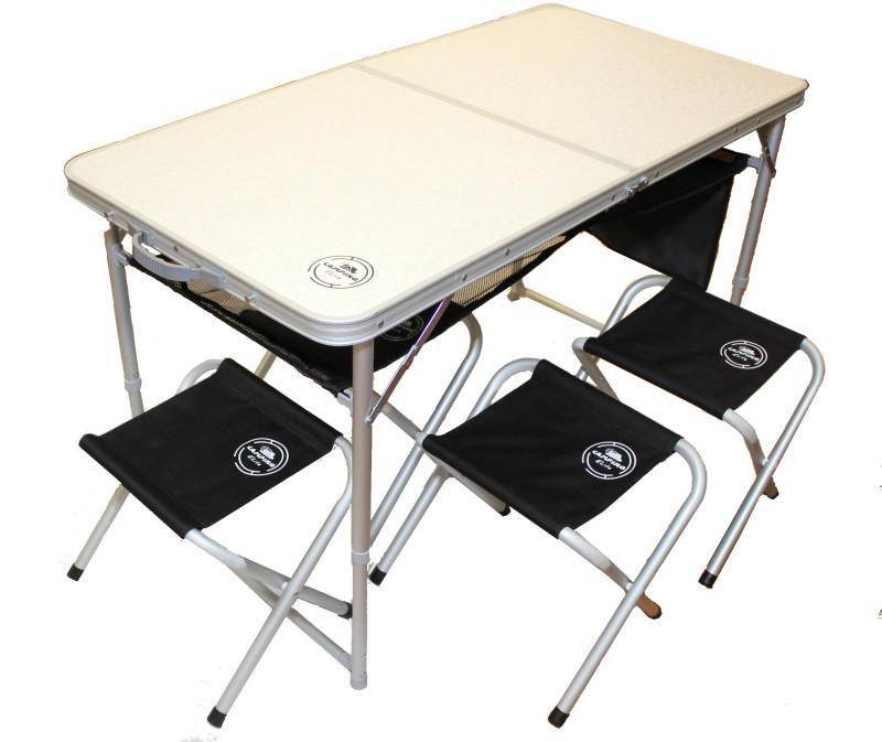 Особенности: складывается пополам, дополнительная полочка, карман, телескопические ножки стола