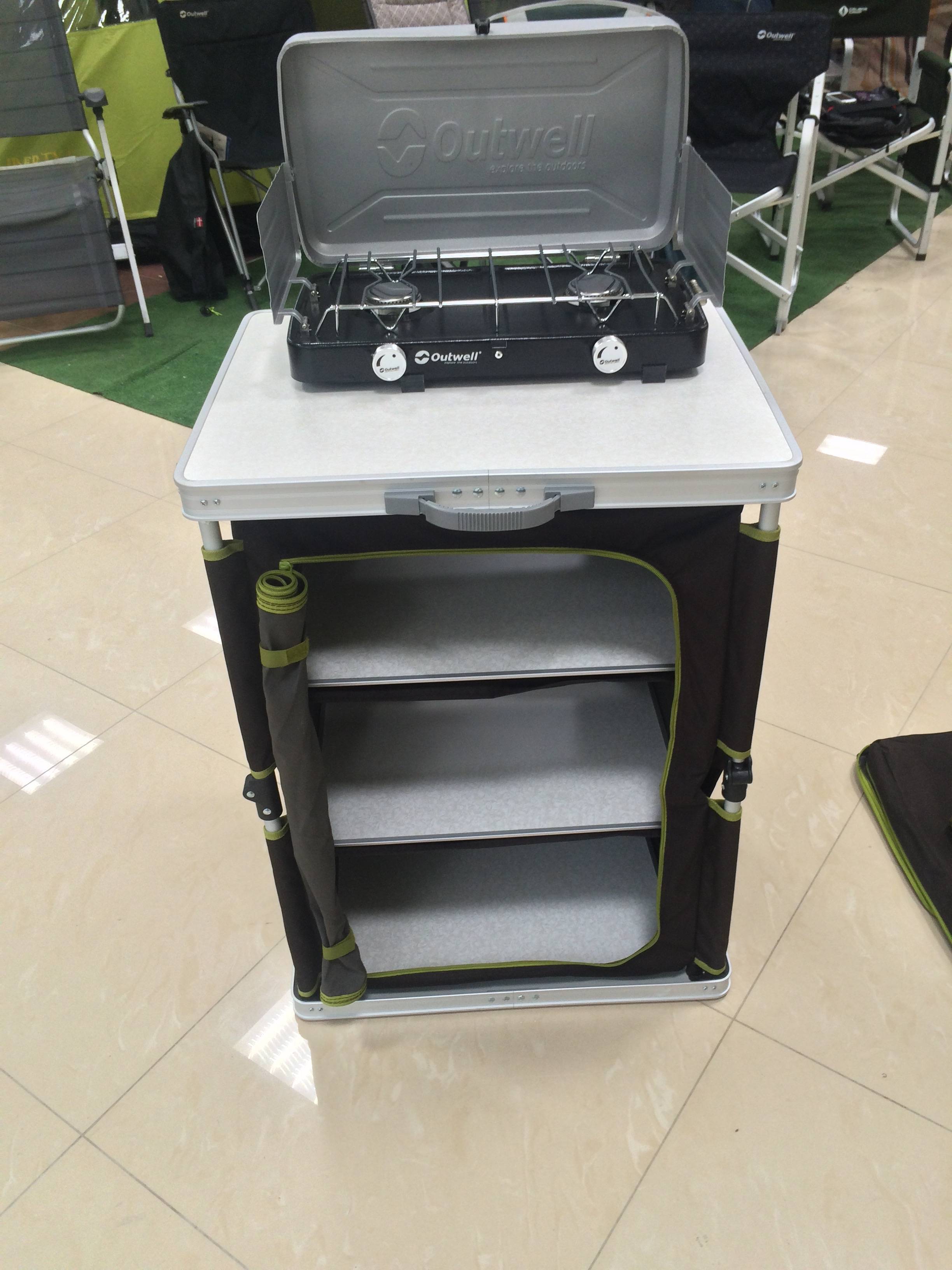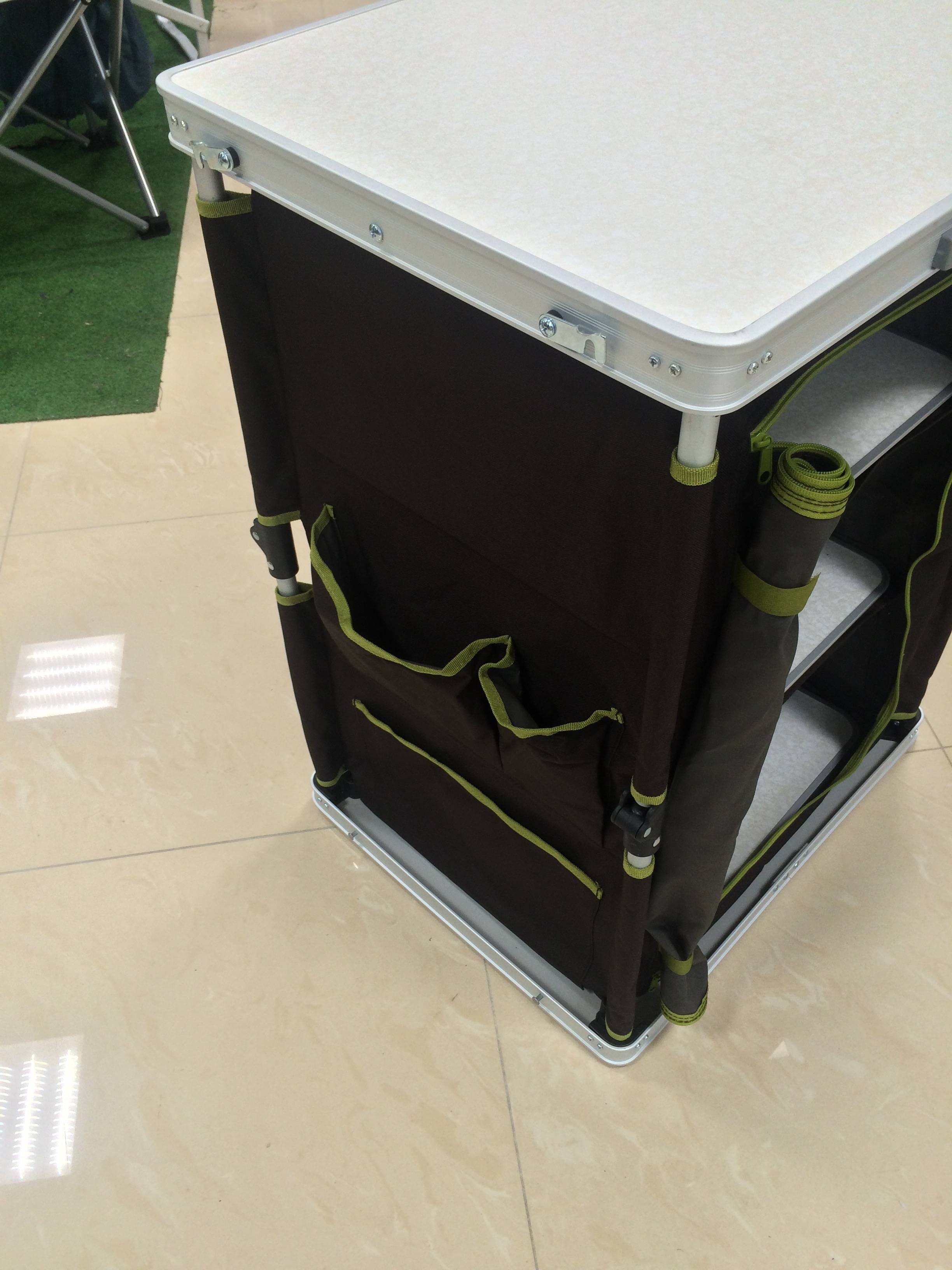Каркас - алюминий, материал - полиэстер 600D, столешницы - пластик.