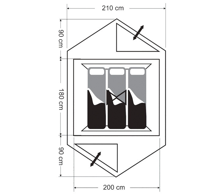 Размеры внешней палатки (ДхШхВ): 360x210x130 смВес: 3 кг